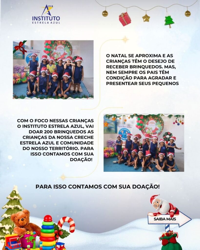 🌟 AJUDE O ESTRELA AZUL A REALIZAR 200 SONHOS NESTE NATAL! 🎁O Natal está chegando, e com ele, a expectativa de 200 corações que o Instituto Estrela Azul atende! 💙